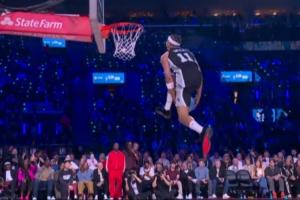 GIF-本屆扣籃大賽首個滿分!卡特·布萊恩特正面胯下?lián)Q手灌籃一次成功!