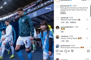斯通斯社媒曬出比賽照片,慶祝復(fù)出,配文:“重返賽場(chǎng)并擔(dān)任隊(duì)長(zhǎng)感覺真好,晉級(jí)下一輪!”