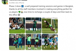 法比奧在個人社媒曬出多張圖片,同時配文寫道:第二階段完成,在曼谷的訓練和比賽安排得很好,感謝所有工作人員為我們球員營造了如此完美的體驗。現(xiàn)在需要休息幾天充電,然后繼續(xù)工作。
