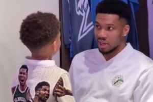 字母哥教導兒子:“你會成為年度最佳新秀,然后你會成為全明星,然后你會在比賽中隔扣文班!”