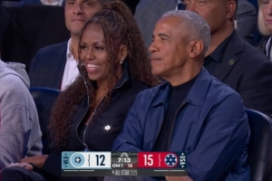 看看是誰(shuí)來(lái)了!奧巴馬現(xiàn)身洛杉磯觀(guān)看全明星 賽前與布克擁抱致意
