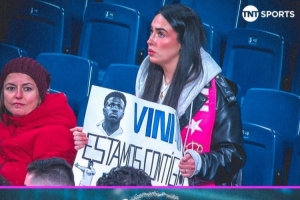 據(jù)TNT報(bào)道,一位球迷在伯納烏球場舉起支持維尼修斯的標(biāo)語牌,上面寫著“維尼修斯,我們與你同在”,表達(dá)對這位皇馬前鋒的支持,此前的比賽中,維尼修斯曾遭到皇馬球迷的噓聲對待。