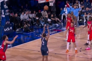 上一篇: 沒機(jī)會我自己來!詹姆斯弧頂持球觀望 踩著logo干拔三分命中!