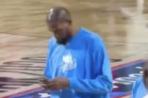 美媒NBA Memes曬出杜蘭特在賽場上看手機的照片(不一定是在比賽中),美媒吐槽:杜蘭特試圖效仿Shams。