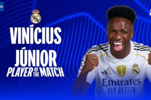體育資訊1月21日訊 歐冠聯(lián)賽階段第7輪,皇馬6-1摩納哥。賽后,維尼修斯被評(píng)為全場(chǎng)最佳球員。