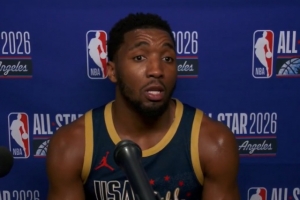 體育資訊2月16日訊 NBA全明星正賽冠軍賽,美國星條隊21-47不敵美國新星隊,賽后,多諾萬·米切爾接受了記者采訪。