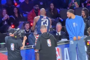 NBA記者Grant Mona曬出一段全明星現(xiàn)場(chǎng)花絮,美國(guó)星條隊(duì)球星詹姆斯在賽前完成個(gè)人經(jīng)典的拋撒鎂粉儀式,因傷缺陣的隊(duì)友庫(kù)里在一旁探頭探腦近距離觀察,還一度想要進(jìn)行模仿。隨后,詹姆斯與庫(kù)里擊掌致意。