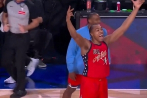 體育資訊2月16日訊 NBA全明星正賽循環(huán)賽,世界隊(duì)加時(shí)35-37惜敗美國新星隊(duì)。