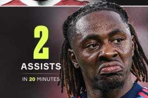 Onefootball指出,埃澤此前15場比賽沒有進球或助攻,而本場比賽開場20分鐘內(nèi)送出2記助攻。