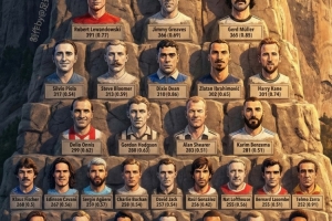 注:皮奧拉意甲官方總進球數(shù)為274球,本數(shù)據(jù)加上了1943-44和1944-45特殊時期兩個賽季意大利頂級聯(lián)賽數(shù)據(jù),皮奧拉總共為317球,這個數(shù)據(jù)是IFFHS認可的版本。
