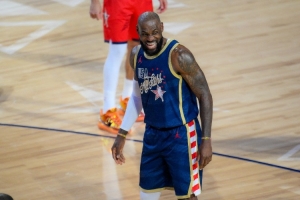 在美國星條隊對陣美國新星隊的比賽最后時刻,詹姆斯冰球助攻福克斯命中壓哨三分,幫助美國星條隊以42-40絕殺美國新星隊。
