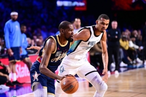 本次全明星賽,文班亞馬出戰(zhàn)2場(chǎng),分別得到14分6籃板3蓋帽、19分2籃板。