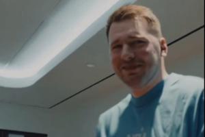 這時候東契奇才剛剛走進(jìn)來,一臉無奈(封面圖)。