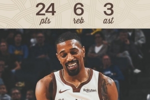 梅爾頓全場(chǎng)比賽僅出戰(zhàn)21分半,16投8中,三分球6中3、5罰全中得到全隊(duì)最高也是個(gè)人賽季新高的24分外加6板3助1斷的數(shù)據(jù)。