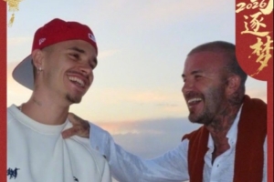 今天是大年初一,貝克漢姆在個人微博曬出與24歲兒子羅密歐·貝克漢姆的合照,他同時配文:聽說過本命年要穿紅色??馬年是羅密歐的本命年??希望中國朋友們馬年快樂!