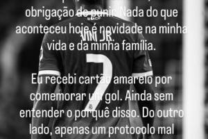 賽后維尼修斯更新社媒,發(fā)表了聲明。