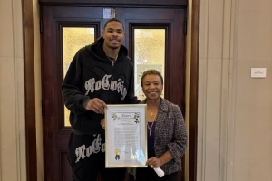 Marc J. Spears寫道:“邁阿密熱火前鋒凱沙·約翰遜在周日贏下NBA扣籃大賽后,今日在奧克蘭市政廳獲頒來自奧克蘭市長Barbara Lee及市議會議員的嘉獎令。”