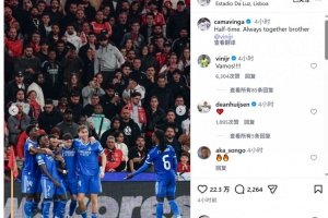 維尼修斯慶祝進(jìn)球時(shí)疑似遭到種族歧視,皇馬中場(chǎng)卡馬文加社媒曬出球員們與維尼修斯的合照,配文:“中場(chǎng)休息,永遠(yuǎn)與你同在,兄弟,維尼修斯。”