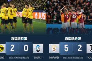 體育資訊02月18日訊 歐冠淘汰賽附加賽首回合,尤文2-5慘敗給加拉塔薩雷,亞特蘭大0-2不敵多特蒙德。