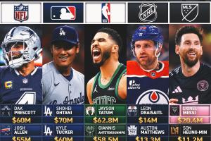 體育資訊02月18日訊 FOX體育發(fā)布了全美五大聯(lián)盟的TOP5薪資,大谷翔平全美最高7000萬美元,梅西2040萬美元,塔圖姆6280萬美元。