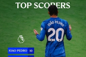 切爾西官方列本賽季隊內(nèi)英超進球榜,若昂·佩德羅以10球居首,帕爾默、恩佐8球并列第二。