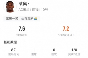 體育資訊2月19日訊 米蘭在本輪意甲對(duì)陣科莫,萊奧本場(chǎng)數(shù)據(jù)如下: