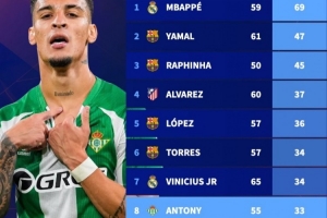 在曼聯(lián)經(jīng)歷低谷之后,安東尼在貝蒂斯重振了自己的職業(yè)生涯。本賽季到目前為止,他各項(xiàng)賽事代表貝蒂斯出戰(zhàn)29場(chǎng)比賽,打進(jìn)10球送出9次助攻。