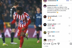盧克曼也在賽后通過社媒曬出自己的慶祝照并配文:“很高興能代表這家俱樂部在歐冠聯賽中首次亮相?;氐酱蠖紩驁?,我們將全力以赴爭取勝利?!?/p>