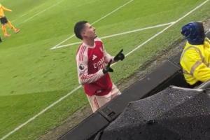 阿森納2-2狼隊,馬丁內(nèi)利面對狼隊球迷挑釁時回應“2-1”的手勢,但此后槍手遭狼隊絕平。