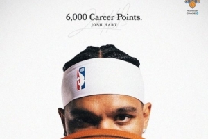截至發(fā)稿,哈特拿到4分,生涯總得分突破6000大關(guān)。