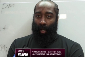 體育資訊2月20日訊 NBA常規(guī)賽,騎士以112-84戰(zhàn)勝籃網(wǎng)。賽后,哈登接受了媒體的采訪。