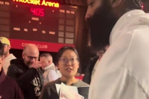 賽后,哈登給遠(yuǎn)道而來的上海球迷送上了簽名。