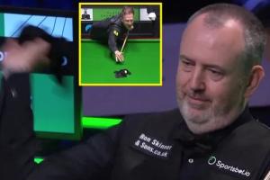 在比賽最后一局,特魯姆普123-0領(lǐng)先時(shí),馬克·威廉姆斯出人意料地拿起了身邊的毛巾,朝球臺(tái)丟去,毛巾精準(zhǔn)命中了特魯姆普準(zhǔn)備擊打的白球。特魯姆普先是一驚,隨后作勢(shì)要隔著毛巾來(lái)?yè)舸虬浊颍贿^(guò)比賽在現(xiàn)場(chǎng)觀眾的笑聲中結(jié)束。