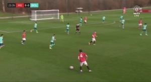 體育資訊02月21日訊 U18英超聯(lián)賽,曼聯(lián)U18對陣?yán)顷燯18。上半場比賽第24分鐘,曼聯(lián)15歲天才小將JJ·加布里埃爾打入一粒精彩的爆桿進(jìn)球。