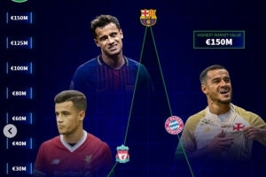 德轉(zhuǎn)也回顧了庫蒂尼奧生涯身價變化走勢,從他加盟國米開始身價不斷提升,經(jīng)過利物浦時期的高光表現(xiàn)后,在2018年效力巴薩時期達(dá)到巔峰的1.5億歐,隨后開始不斷走下坡路,經(jīng)歷拜仁、維拉效力后離開五大聯(lián)賽,先后加盟杜海勒以及瓦斯科達(dá)迦馬,目前身價僅剩350萬歐。