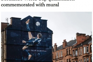 這幅由阿迪達斯委托創(chuàng)作的壁畫于周五在蘇格蘭隊主場格拉斯哥球場外揭幕,以紀念“蘇格蘭歷史上最偉大的進球之一”。