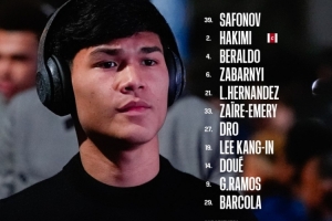 舍瓦利耶、雷納托·馬林、馬爾基尼奧斯、努諾·門德斯、帕喬、維蒂尼亞、若昂·內(nèi)維斯、克瓦拉茨赫利亞、姆巴耶