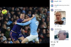 哈蘭德也在賽后通過(guò)社媒曬出自己和丹·伯恩互相拉扯的貼身肉搏照,并幽默調(diào)侃:“辦公室里的又一天。”