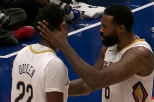 GIF-德拉蒙德防守中推奎因 后者推回去險引發(fā)沖突 判罰看回放吹罰德拉蒙德技術(shù)犯規(guī)