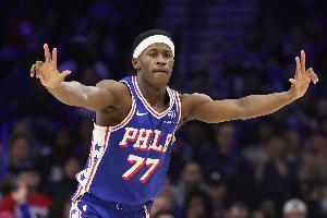 體育資訊2月22日訊 76人客場(chǎng)挑戰(zhàn)鵜鶘,上半場(chǎng)65-57領(lǐng)先。