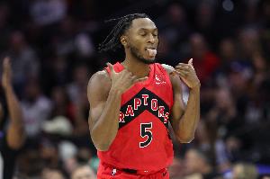 上半場比賽,猛龍全員進攻端都狀態(tài)不錯,內(nèi)外線都多點開花,全隊半場45中26,命中率57.8%;三分18中10,命中率55.6%。