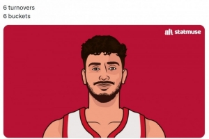 賽后美媒StatMuse發(fā)推寫道:“申京在紐約的表現(xiàn):6個進球、6次失誤。”
