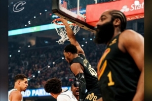 體育資訊2月22日訊 在前天騎士大勝籃網(wǎng)的比賽中,哈登為米切爾送出了一記不可思議的空接。