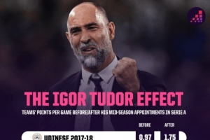 據(jù)統(tǒng)計(jì),圖多爾此前在意甲5次中途接手球隊(duì)后,戰(zhàn)績均有所提升,具體情況如下(場(chǎng)均積分變化):