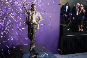 體育資訊2月23日訊 今日湖人為球隊(duì)傳奇主教練帕特·萊利舉行雕像揭幕儀式。