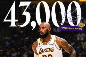 截至發(fā)稿時,詹姆斯已經(jīng)得到16分,NBA生涯常規(guī)賽總得分突破43000大關(guān),成為史上首位43000分先生。