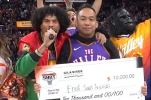 GIF——太陽(yáng)球迷投中中場(chǎng)三分 喜提1萬(wàn)刀