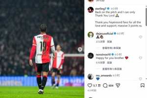 斯特林此役替補(bǔ)出場,上演費(fèi)耶諾德首秀,賽后他在社交媒體上寫道:“重返賽場,對上帝唯有感恩?!?/p>