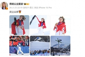谷愛凌在米蘭冬奧會自由式滑雪女子U型場地技巧賽摘金,本屆冬奧會1金2銀,生涯斬獲3金3銀6枚獎牌。