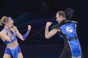整場表演設計極具巧思:開場階段,兩人站在冰場邊緣模擬日常對話,梅特爾基娜提議去觀看花樣滑冰表演,貝魯拉瓦則表示更想玩電腦游戲,并提出教搭檔玩游戲,隨后兩人身著《真人快打》中經(jīng)典角色吉塔娜、絕對零度的造型登場,正式開啟冰上表演。